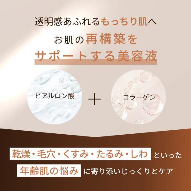 さらにコラーゲンの材料成分を配合し、しわ・たるみなど年齢サインに多角的にアプローチします。