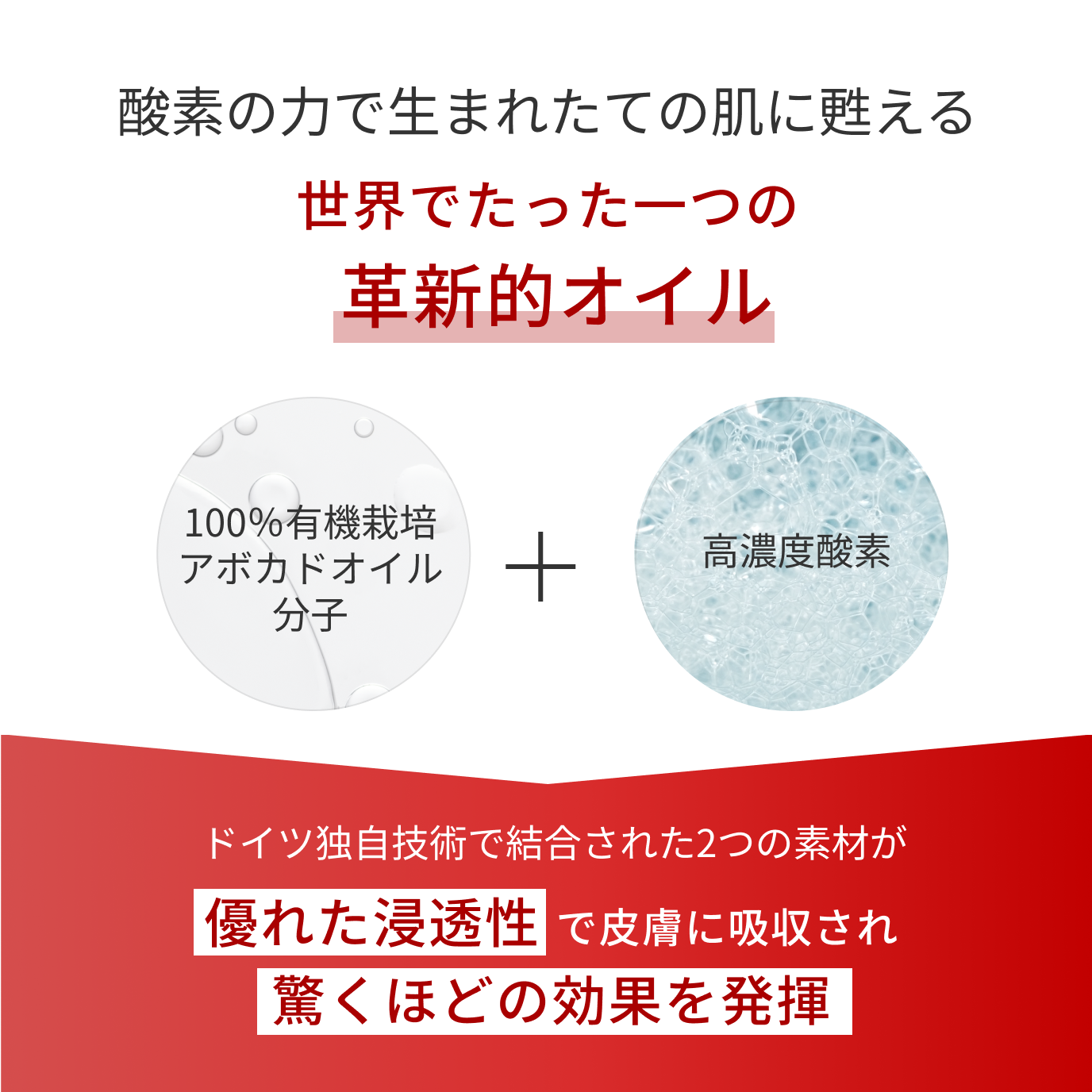 ドイツ独自の技術により、有機アボカドオイルに酸素を結合させて誕生しました。