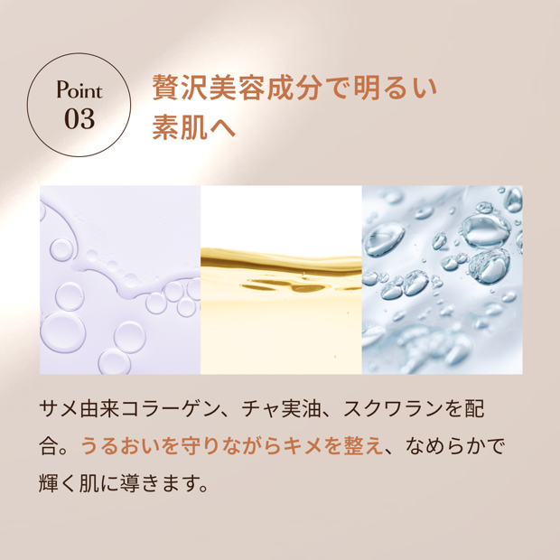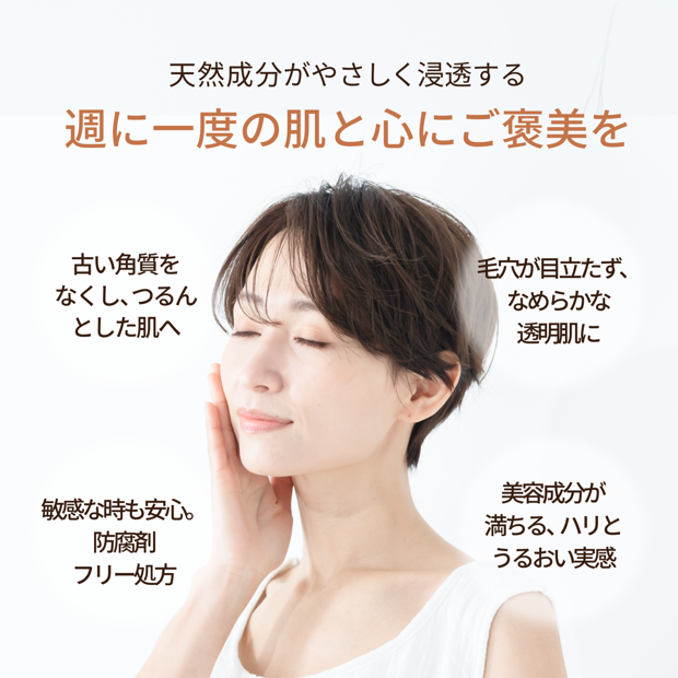 こすらずなじませるだけで、しっとりつるんとした透明肌へ。