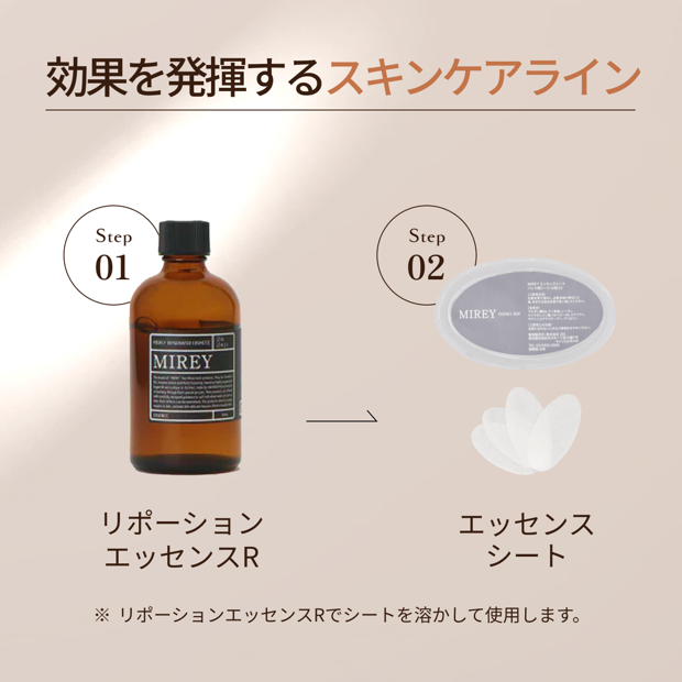 溶かして使用する、フリーズドライのシートタイプ 無香料 小皿や手のひらにシートを1枚置き、リポーションエッセンスを適量含ませます。 指先で軽く揉むとジェル状になりますので、そのまま顔全体にやさしくのばしてください。 5〜10分ほどおき、半乾きになったらぬるま湯でやさしく洗い流します。 週に1〜2回のスペシャルケアとして、普段のお手入れにプラスするのがおすすめです。 擦る必要はなく、やさしくなじませるだけで十分な効果を感じていただけます。 ・お肌に異常が生じていないかよく注意して使用してください。 ・傷やはれもの、湿疹等の異常がある部位にはご使用をお控えください。 ・使用中または使用後に赤み、はれ、かゆみ、刺激等の異常があらわれた場合は、使用を中止し、皮膚科専門医等へご相談ください。 ・目に入らないようご注意ください。万一目に入った場合は、すぐに水またはぬるま湯で洗い流してください。 ・乳幼児の手の届かない場所に保管してください。 ・極端に高温または低温、多湿、直射日光のあたる場所には保管しないでください。 ① フリーズドライ製法 × 防腐剤フリー ② やさしく角質&毛穴ケア ③ 贅沢美容成分で明るい素肌へ 「小さいけれど本当にスッキリする」 ーそんなリピートの声が多数寄せられています。 普段のケアでは物足りないと感じるときのスペシャルケアや、肌をリセットしたい時、気分転換にもぴったりな一品です。商品の形状