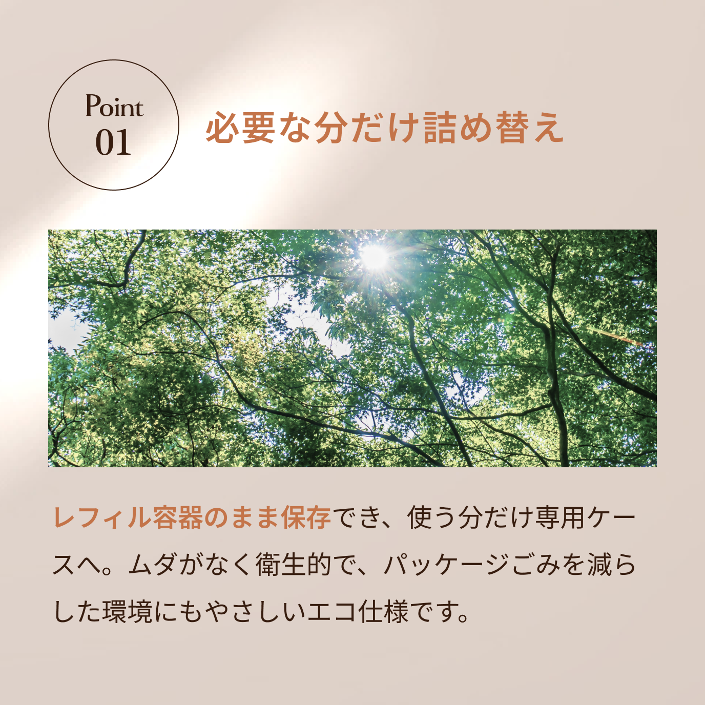 レフィル容器のまま保存でき、使う分だけ専用ケースへ。
