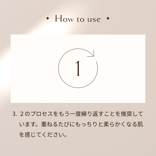 オイルを先につけることに抵抗がありましたが、使ってみるとベタベタしないのと、肌が柔らかくなり、また保湿効果もあり、気に入りました。