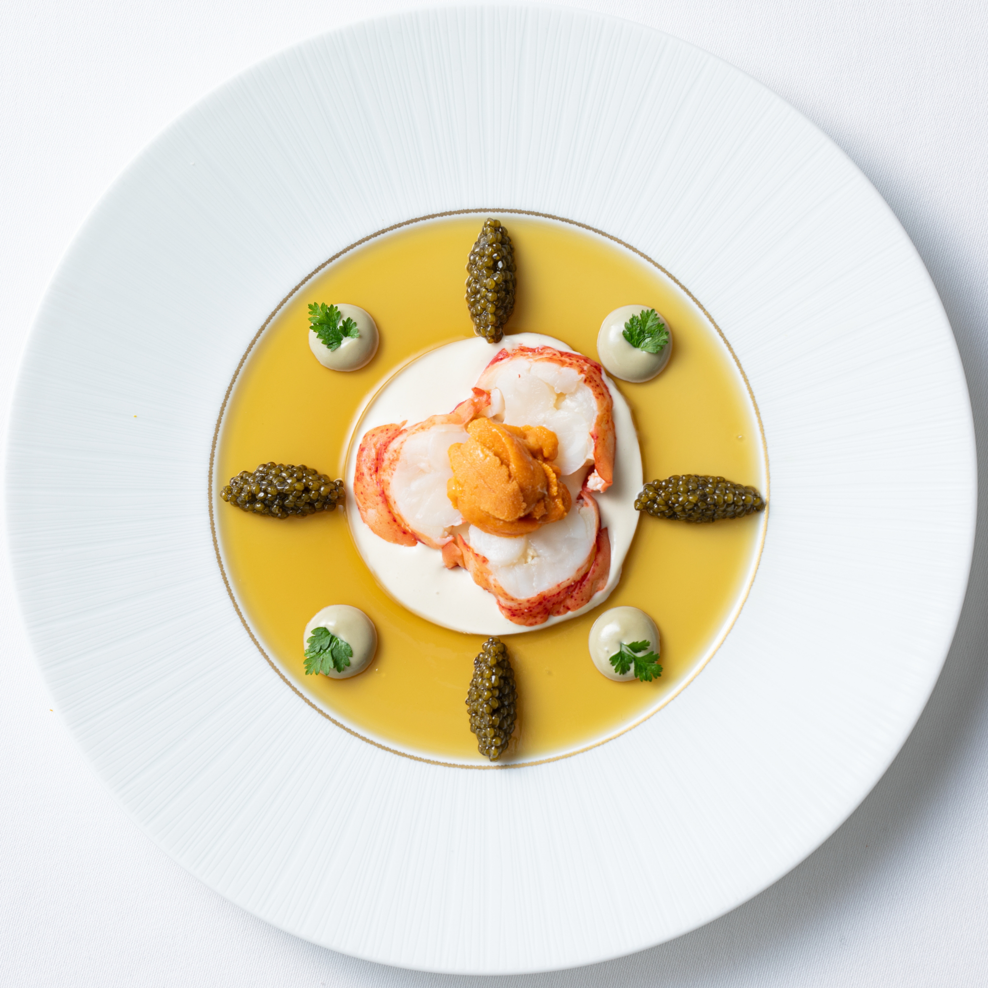 オマール海老、カリフラワーと雲丹のショ・フロワ キャビア添え